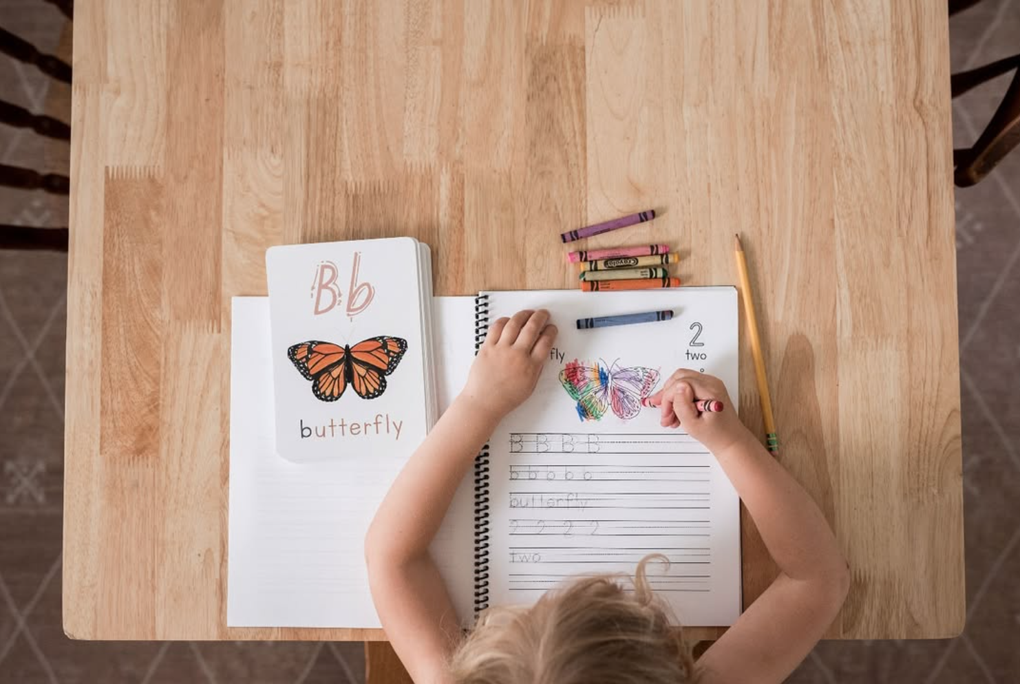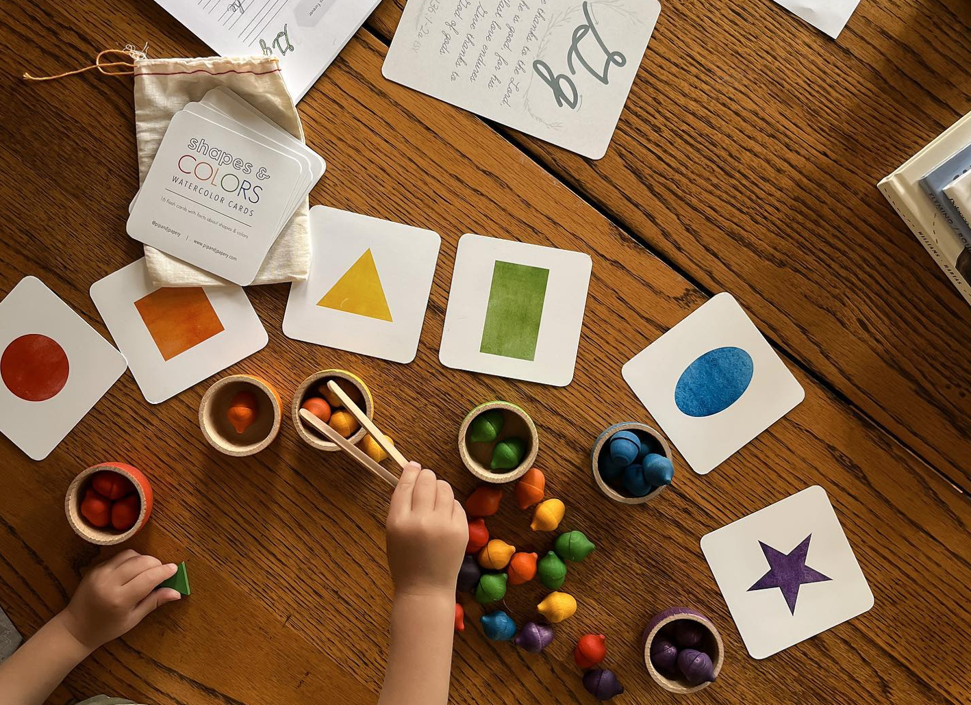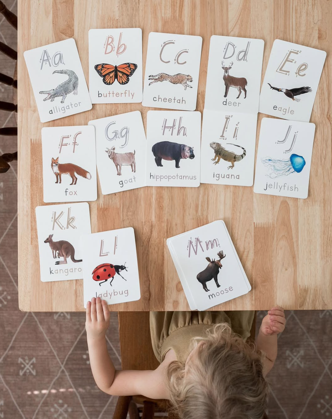 illustrated animal-themed ABC + 123 flash cards with a matching workbook product design